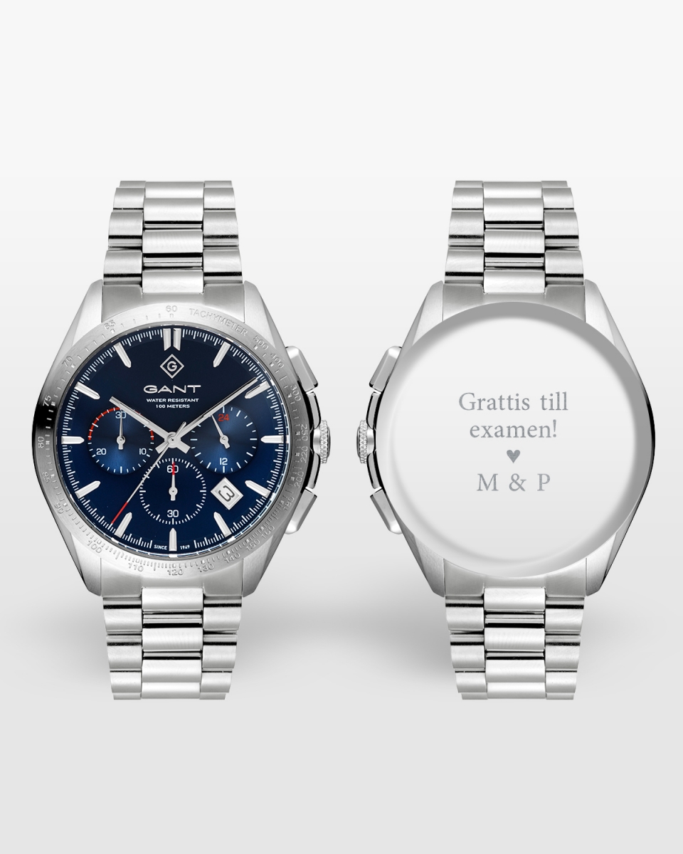 Gant klocka med gravyr, Hammondsport Blue-Silver Metal