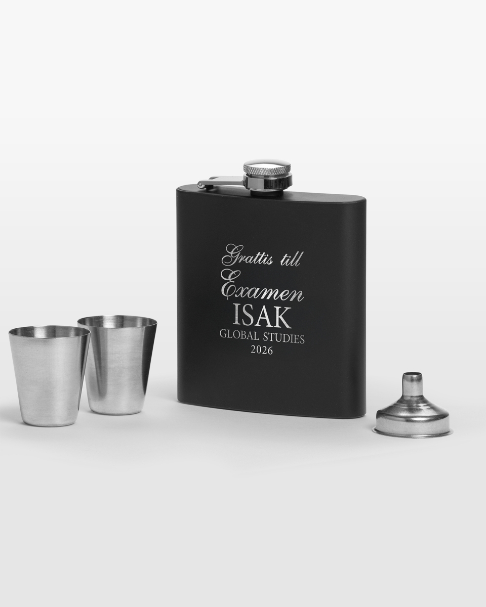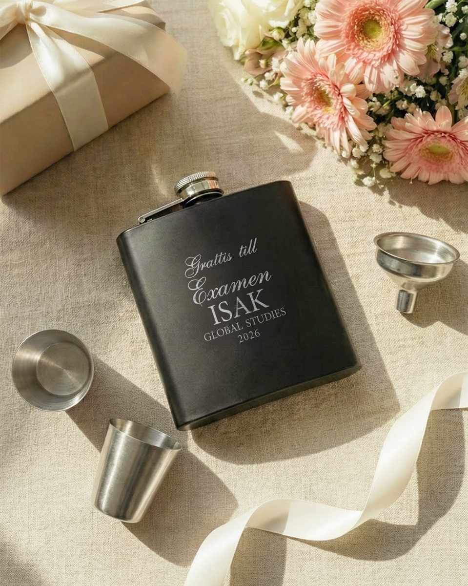 Uppmärksamma examen med en personlig och oväntad gåva – en stilren fickplunta med gravyr som blir ett minne att bära med sig länge. En perfekt examenspresent till den som vill fira sin prestation med något både praktiskt och personligt.