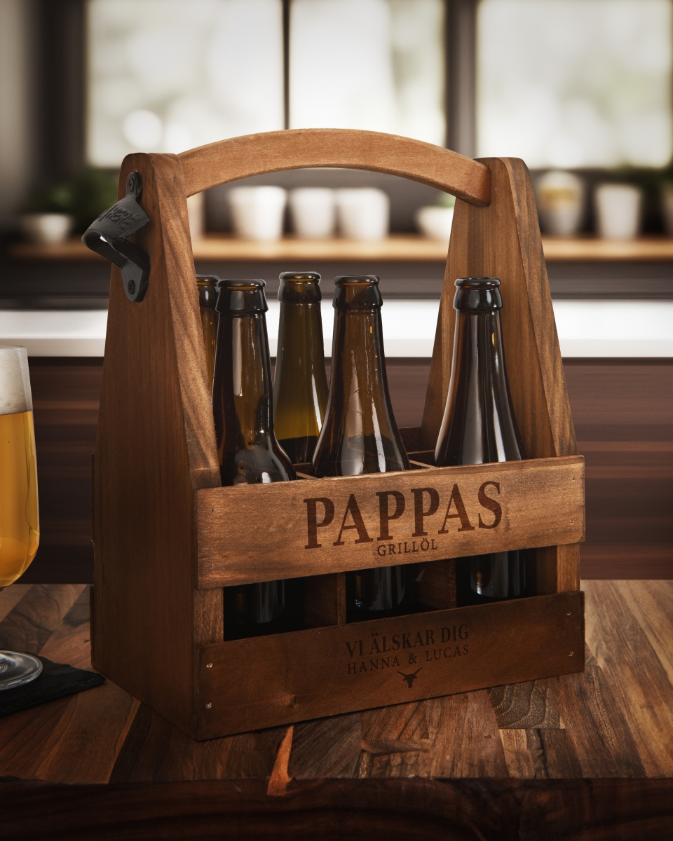Letar du efter den ultimata farsdagspresenten till pappa? Vår ölkorg med plats med personlig gravyr är den perfekta gåvan. Denna unika ölkorg kombinerar funktionalitet med personlig touch på ett minnesvärt sätt.