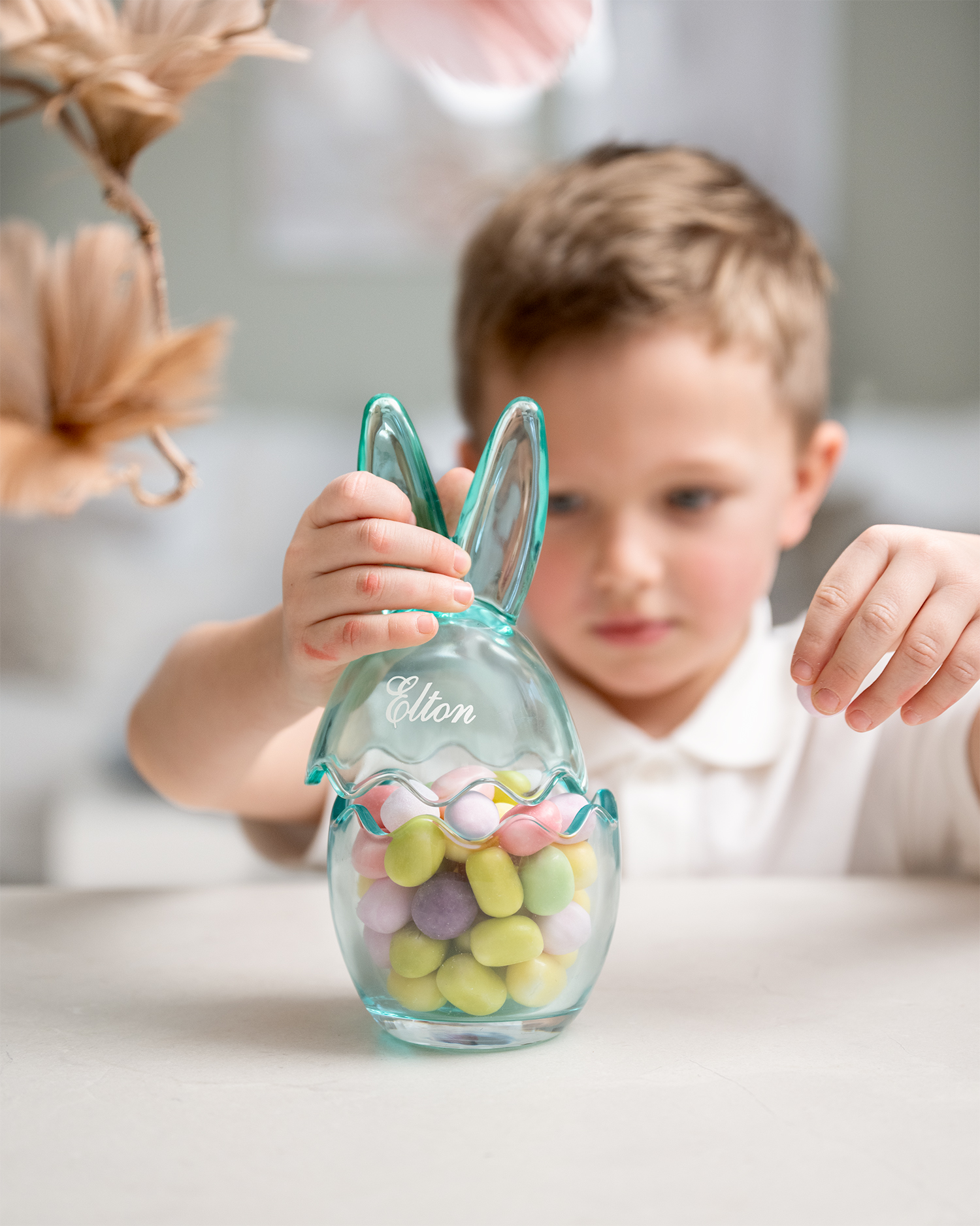 Brodyr, gravyr, tryck eller print är de vanligaste metoderna vi använder för att personifiera just din påskpresent, och här hittar du alltifrån gosedjurskaniner av återvunnet material, till vackra påskägg i glas. Du väljer själv om du vill föreviga dem med ett namn eller smeknamn, samt om du vill lägga till ett valfritt budskap.