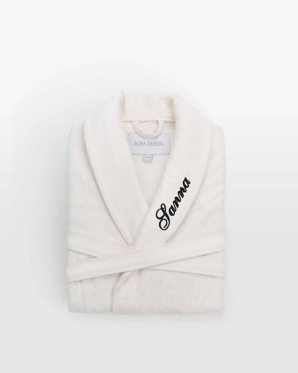 Namnet broderas i elegant skrivstil direkt på badrocken och blir en personlig detalj som gör varje rock unik. Badrocken är idealisk att matcha med föräldrarnas badrockar för mysiga familjestunder, och som en personlig present till barn. Dess tidlösa cremefärg passar i alla hem och ger en mjuk, varm känsla samtidigt som designen känns modern och stilren.