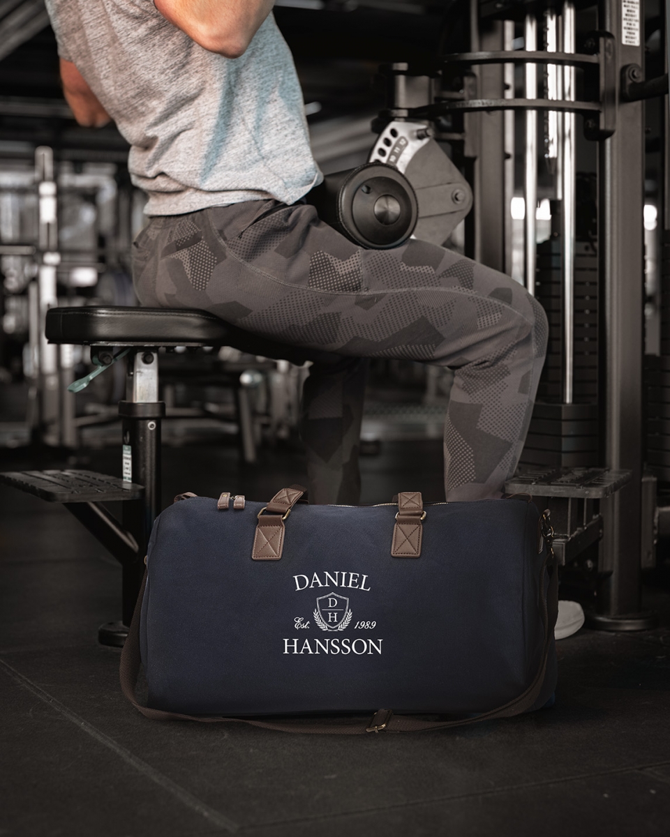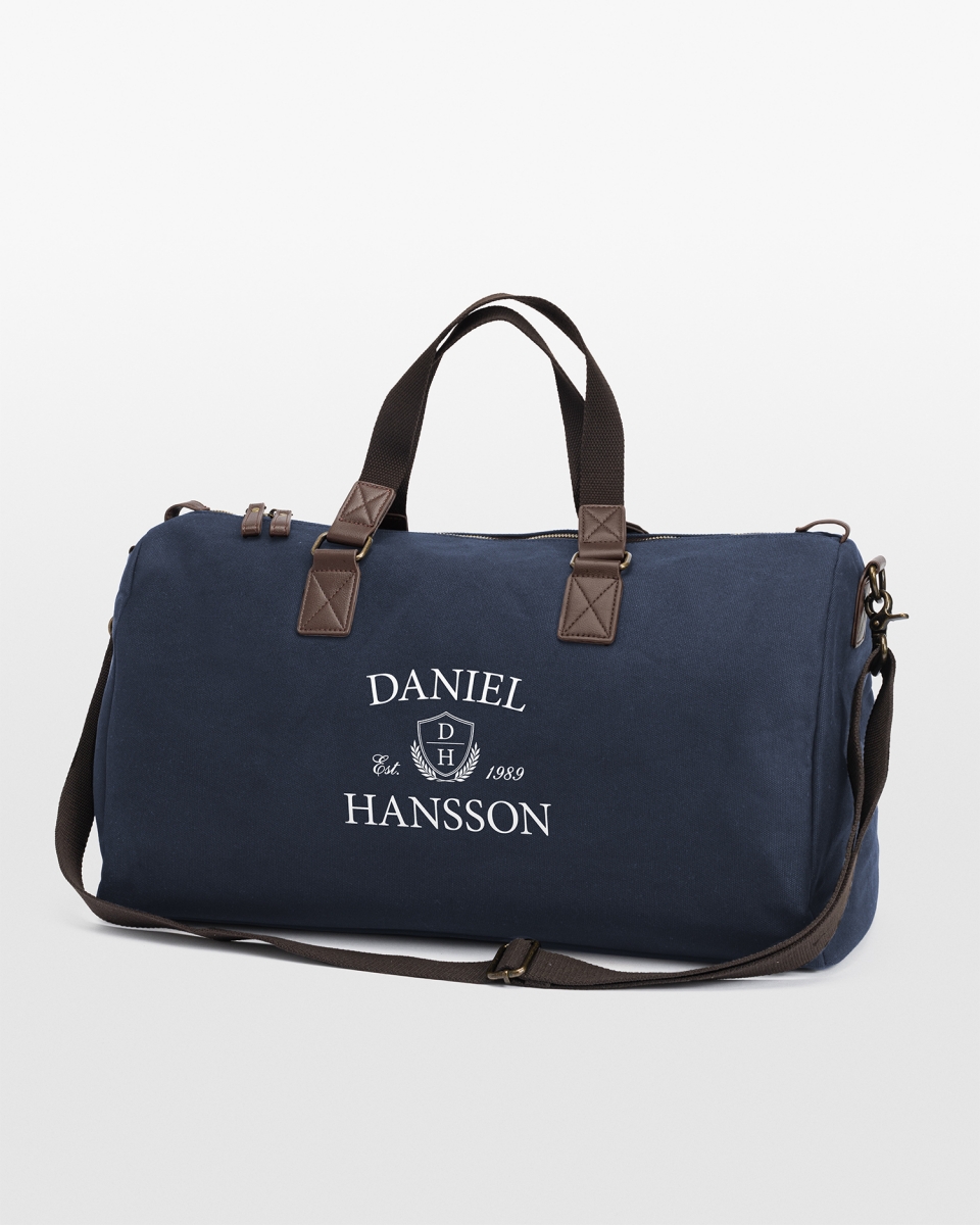 Upptäck vårt senaste tillskott från vår herrserie Lounge, där stil och funktion möts i perfekt harmoni. Denna exklusiva duffle bag i marinblått kan göras extra personlig med ett valfritt namn tryckt på sidan. Detta gör väskan till en unik och uppskattad present att ge bort till han som redan har allt!