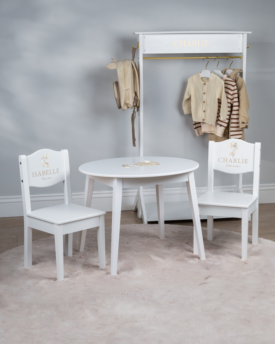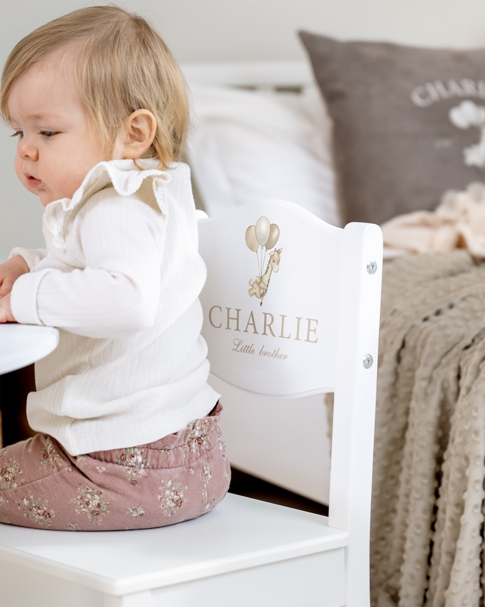 739 krBarnbord & stolar med namn, vit - Giraff