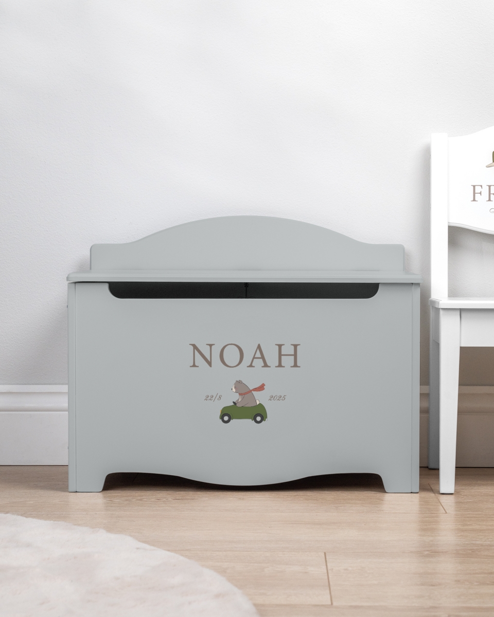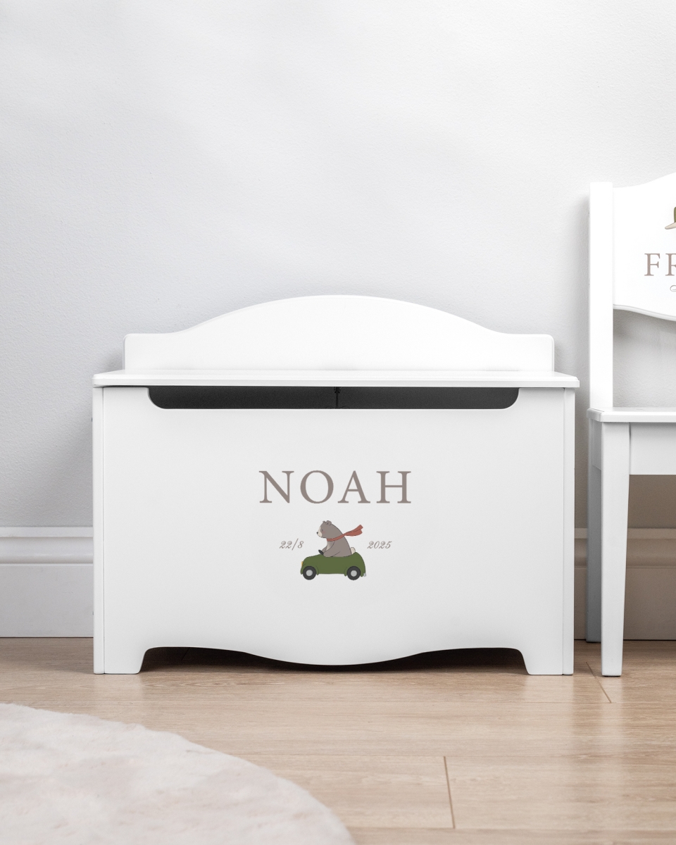 Denna förvaringskista är den perfekta kombinationen av funktion och charm, skapad för att hålla ordning på leksaker, böcker och små skatter, samtidigt som den ger barnrummet en personlig och inspirerande touch. Med sitt lekfulla björnmotiv av den modiga och fantasifulla björnen Nalle, blir denna kista mer än bara förvaring – den blir en del av barnets berättelse.