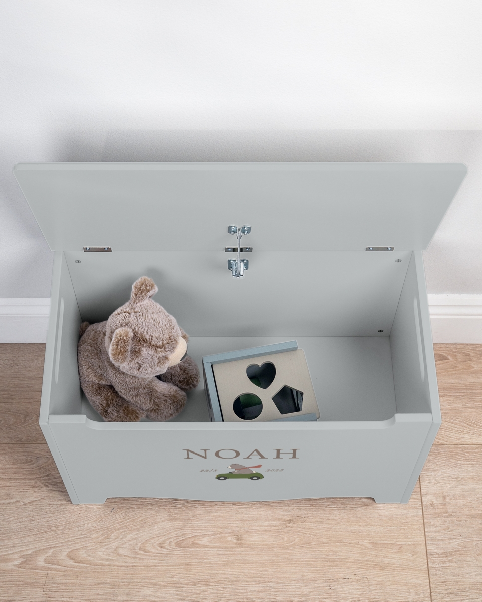 Kistan är personligt anpassad med barnets namn och födelsedatum, vilket gör den till ett minnesvärt och tidlöst föremål som kan bevaras genom åren. Nalle, som älskar att ge sig ut på äventyr och upptäcka världen, skapar en känsla av värme, trygghet och magi i barnrummet – ett hem för alla drömmar och fantasi.
