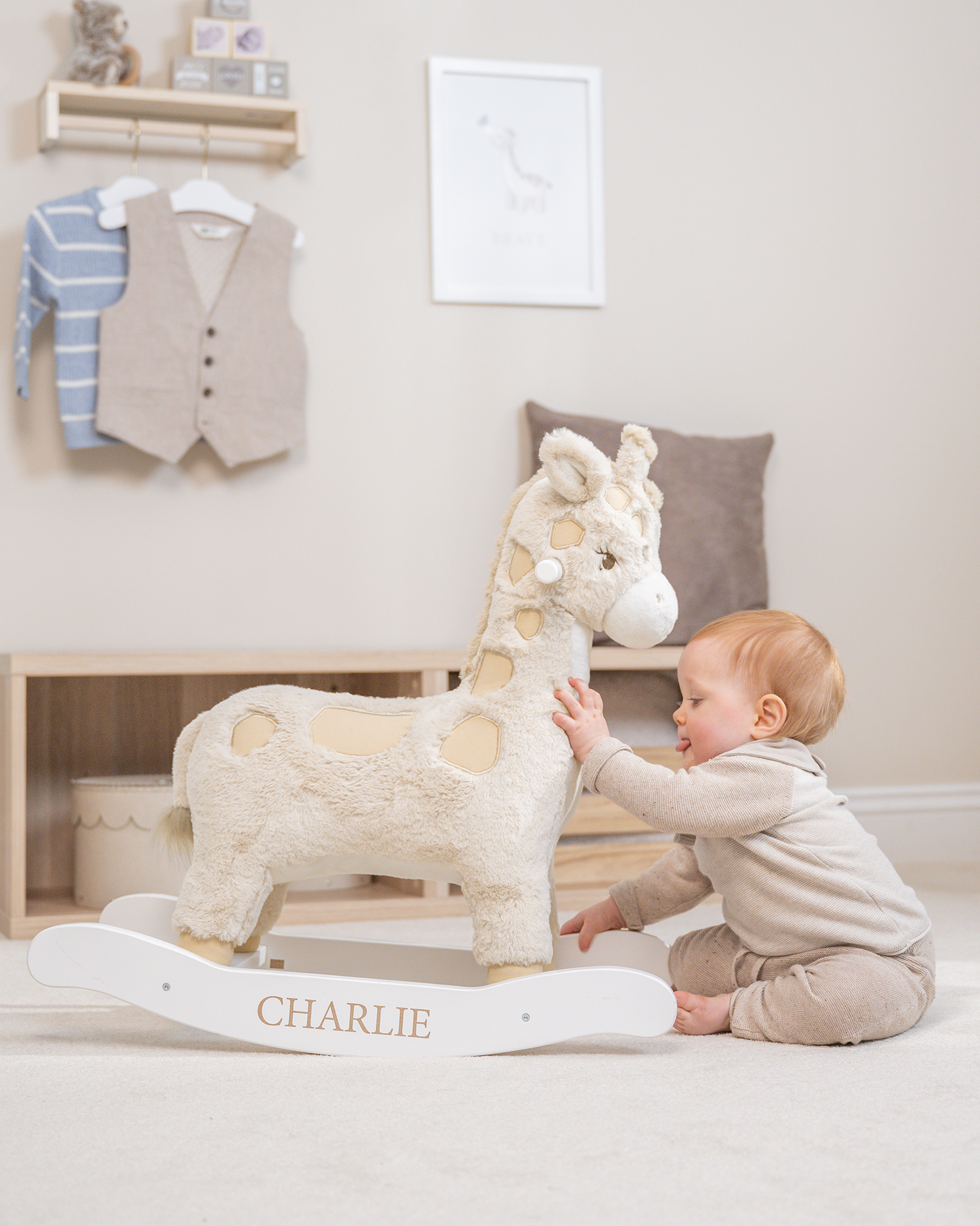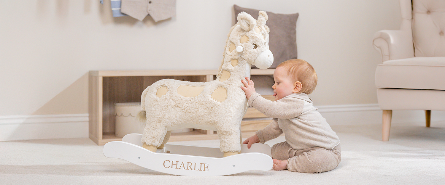 Den personliga märkningen med barnets namn gör gungdjuret extra unik. Givetvis väljer du själv vilket namn som ska graveras på gungdjurets medar – förnamn, smeknamn, eller kanske namnet på det lilla dopbarnet? Gungdjuret är en perfekt present att ge bort i doppresent eller till födelsedagen.