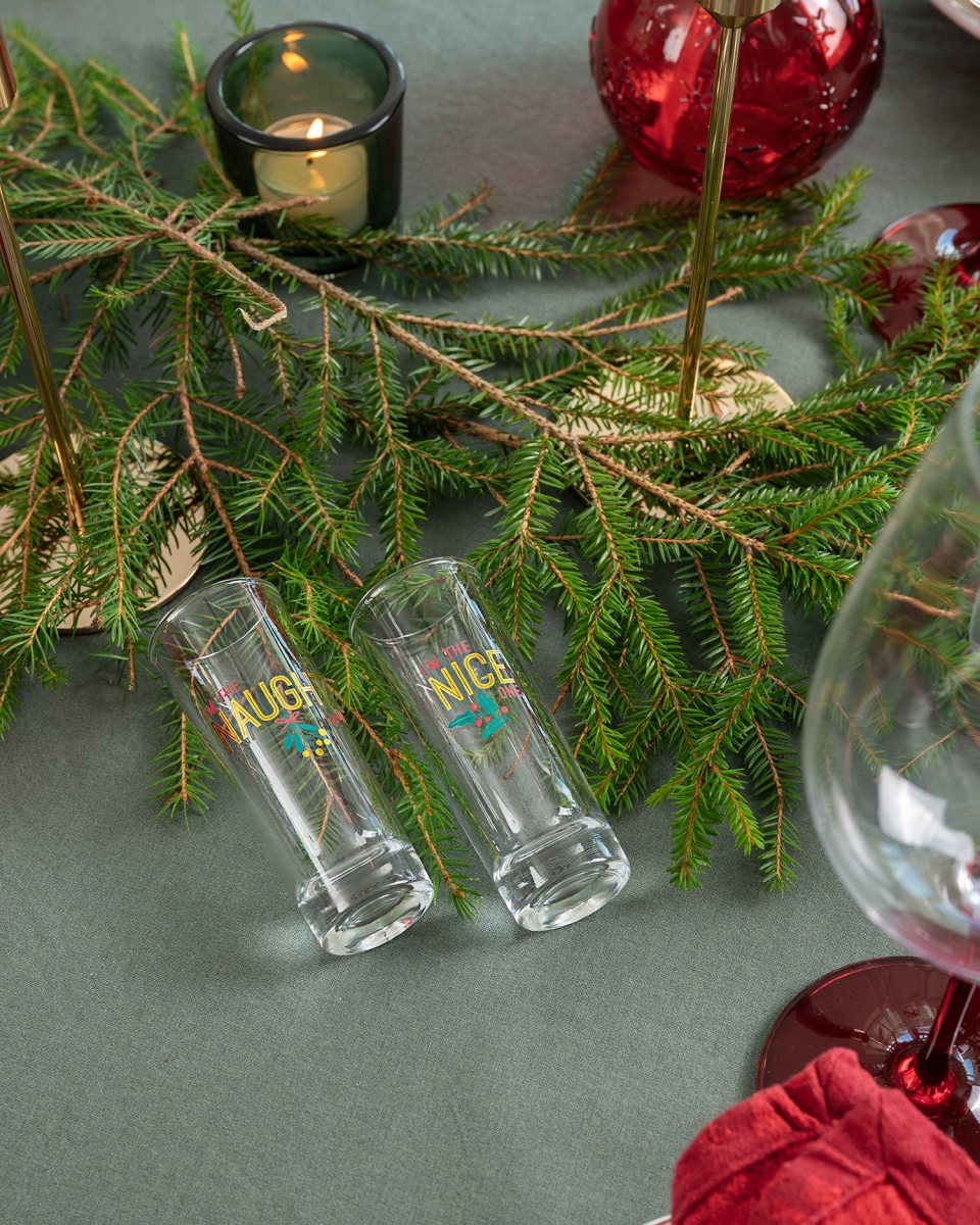 Dubbelväggade dricksglas med rött glitter, 2 pack