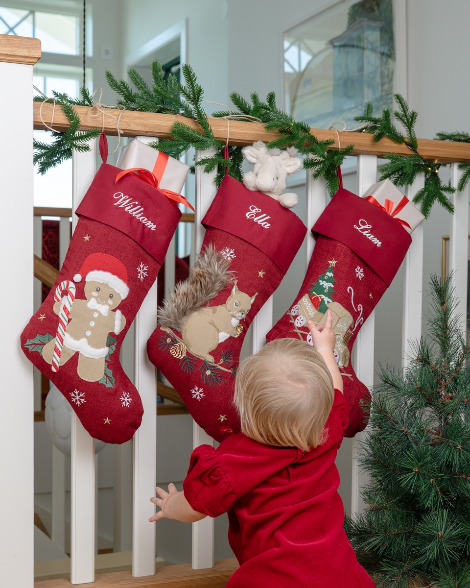 Julkalender med namn, röd - Ekorre